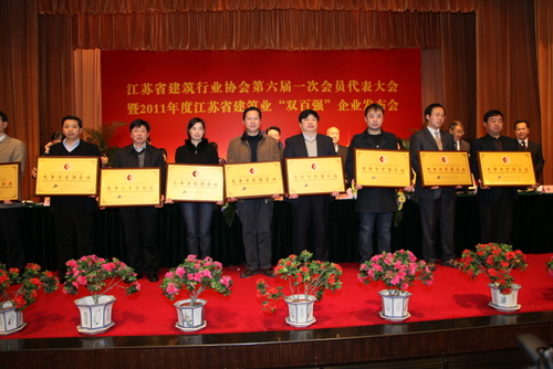 2011年度江蘇省建筑業(yè)“競爭力”百強(qiáng)企業(yè)代表上臺領(lǐng)獎