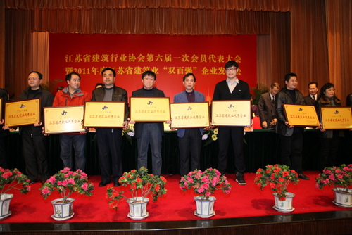 2011年度江蘇省建筑業(yè)“最具成長性”百強(qiáng)企業(yè)代表上臺領(lǐng)獎