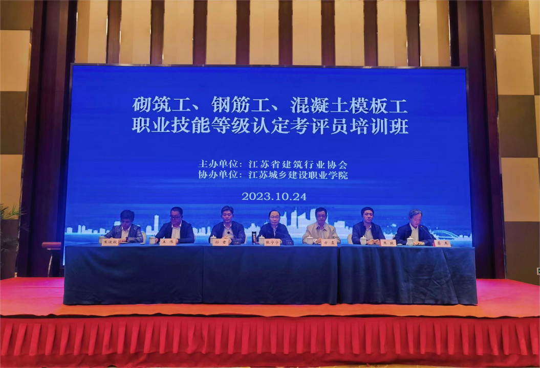 為進(jìn)一步加強(qiáng)職業(yè)技能等級(jí)認(rèn)定考評(píng)員隊(duì)伍建設(shè),江蘇省建筑行業(yè)協(xié)會(huì)于2023年10月23日至25日在常州舉辦了砌筑工、鋼筋工、混凝土模板工職業(yè)技能等級(jí)認(rèn)定考評(píng)員培訓(xùn)班,全省共170人參加了本次培訓(xùn)班。常州市住房和城鄉(xiāng)建設(shè)局副局長(zhǎng)孫君出席開班儀式并致辭,省建筑行業(yè)協(xié)會(huì)會(huì)長(zhǎng)張寧寧參加開班儀式并作動(dòng)員講話。省住房和城鄉(xiāng)建設(shè)廳三級(jí)調(diào)研員方直、省職業(yè)技能鑒定中心鑒定考核科朱政蒞臨培訓(xùn)班指導(dǎo),江蘇城鄉(xiāng)建設(shè)職業(yè)學(xué)院黨委副書記王偉、常州市建筑行業(yè)協(xié)會(huì)秘書長(zhǎng)朱俊毅參加了開班儀式。開班儀式和培訓(xùn)班由省建筑行業(yè)協(xié)會(huì)秘書長(zhǎng)蔡杰主持。