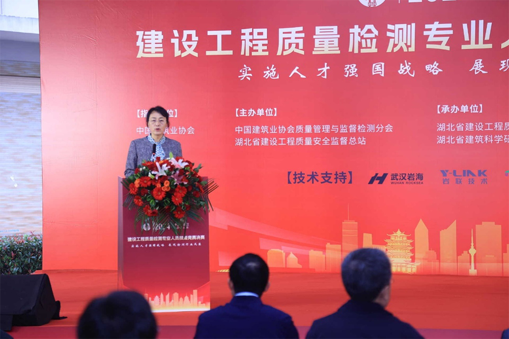 中國建筑業(yè)協(xié)會副秘書長王秀蘭致開幕辭,中國建筑業(yè)協(xié)會副會長兼秘書長劉錦章、中國建筑業(yè)協(xié)會監(jiān)事長朱正舉、中國建筑業(yè)協(xié)會質(zhì)量管理與監(jiān)督檢測分會副會長兼秘書長王昭,湖北省相關(guān)廳局負責(zé)同志,武漢市有關(guān)負責(zé)同志,各代表團相關(guān)負責(zé)人,參賽選手、部分行業(yè)和企業(yè)代表等參加開閉幕式。