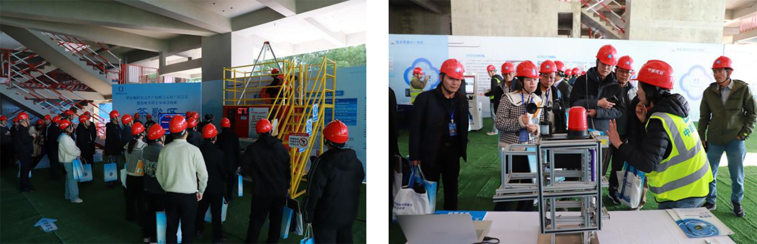 會(huì)議組織了蘇州萬科左岸項(xiàng)目安全標(biāo)準(zhǔn)化工地觀摩活動(dòng)。該項(xiàng)目由中建四局六公司承建,地處蘇州工業(yè)園區(qū)金雞湖核心區(qū)域,總建筑面積約26.1萬平方米。項(xiàng)目自開工建設(shè)起,在設(shè)計(jì)、施工、管理等方面大膽創(chuàng)新,先后攻克了城市核心區(qū)大方量土方開挖、1.5萬方大體積混凝土澆筑、超高層勁性柱安裝等難題。中建四局江蘇建投公司立足建筑業(yè)安全生產(chǎn)實(shí)際,聚焦實(shí)現(xiàn)項(xiàng)目安全生產(chǎn)的5G智能遠(yuǎn)程操控塔吊系統(tǒng)、智能施工升降機(jī)、視頻AI巡檢、無人機(jī)AI巡檢建模、有限空間自動(dòng)檢測(cè)控制系統(tǒng)、應(yīng)急逃生沙盤演練等六大智能安全技術(shù),展示科學(xué)規(guī)劃圖文,設(shè)計(jì)微縮演示模型,配備專業(yè)講解人員,演示設(shè)備操作流程,生動(dòng)形象地說明各項(xiàng)技術(shù)的使用優(yōu)勢(shì)、作用場(chǎng)景,充分展示了智能化、信息化技術(shù)在建筑安全施工中的廣泛應(yīng)用,為與會(huì)者提供了寶貴的借鑒和學(xué)習(xí)機(jī)會(huì)。