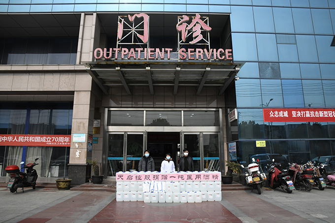 面對疫情,天啟人在黨總支書記、董事長方沛琪的領導下,第一時間響應政府號召,主動擔當作為,踴躍捐款捐物,為地方新冠肺炎防控工作奉獻涓埃之力。截止2月19日,天啟控股集團分批分次捐贈給武進區(qū)、經(jīng)開區(qū),及其他物資緊缺的36家單位超150萬元抗疫物資。累計已有32萬余只口罩、2.75噸醫(yī)用酒精、7000雙一次性醫(yī)用手套、1000副醫(yī)用護目鏡、30套醫(yī)用防護服,標準化集裝箱及體溫槍、消毒液、噴壺等物資用于抗擊疫情。