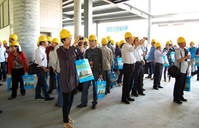 與會代表參觀第二批全國建筑業(yè)綠色施工示范工程——中新生態(tài)大廈土建總包工程(蘇州二建建筑集團有限公司承建)