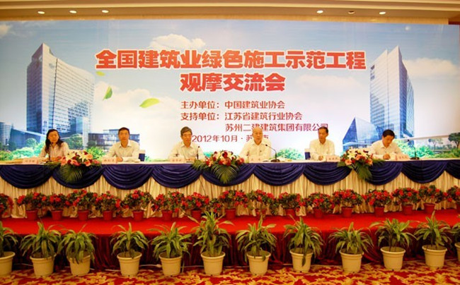 10月11-12日,中國建筑業(yè)協(xié)會在蘇州舉辦了全國建筑業(yè)綠色施工示范工程觀摩交流會,并發(fā)布了《全國建筑業(yè)綠色施工示范工程申報與驗收指南》。中國建筑業(yè)協(xié)會副會長兼秘書長吳濤、江蘇省建筑行業(yè)協(xié)會會長高學斌出席會議并講話。會議由中建協(xié)副秘書長劉宇林主持。