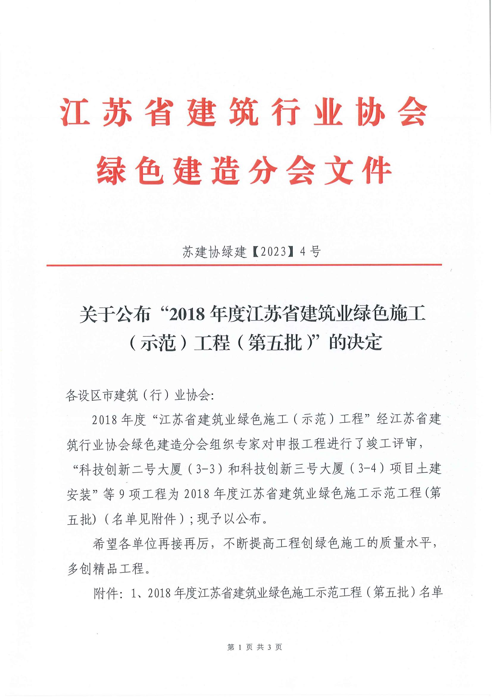 附件:2018年度江蘇省建筑業(yè)綠色施工示范工程(第五批)名單