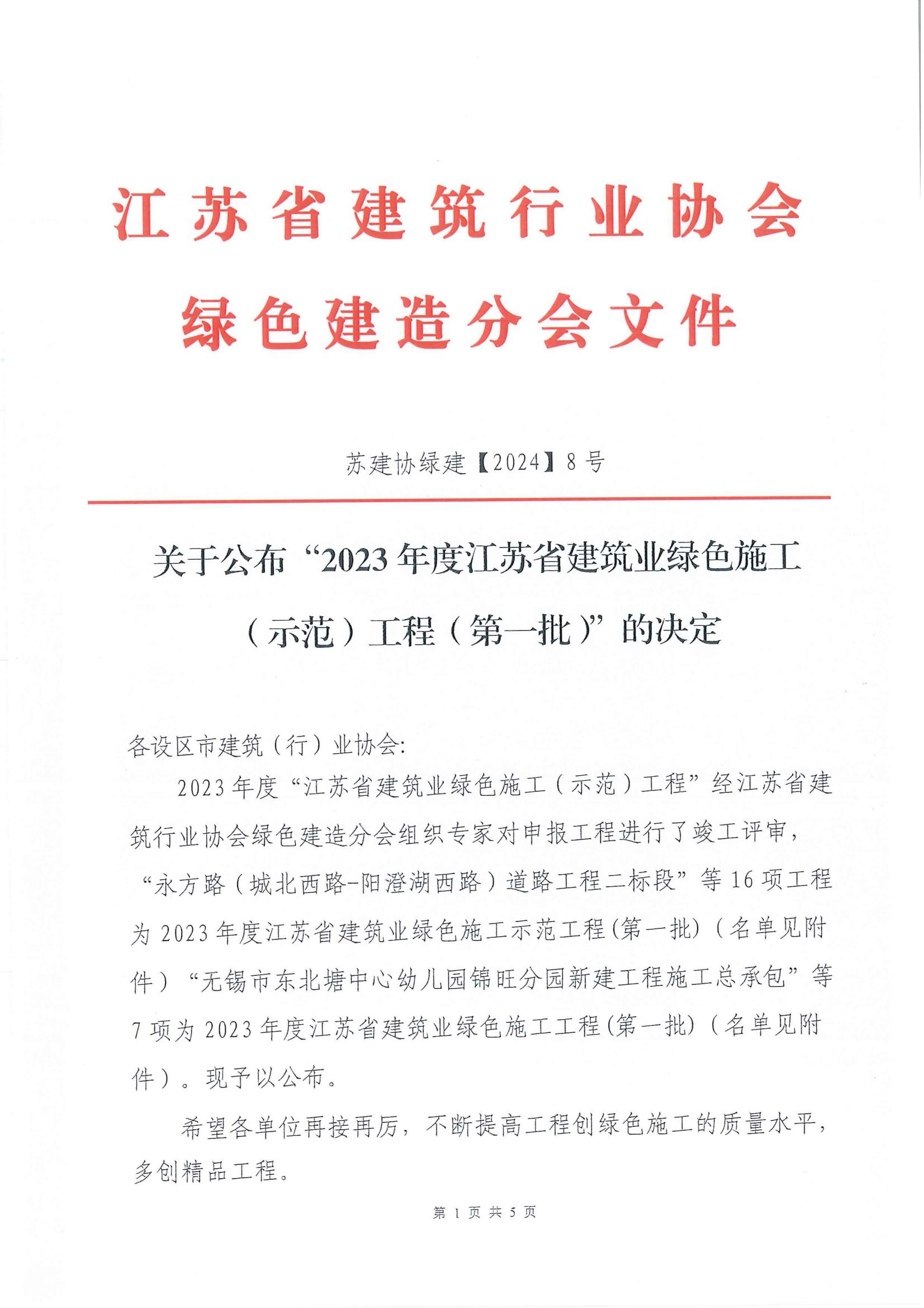 附件:1、2023年度江蘇省建筑業(yè)綠色施工示范工程(第一批)名單